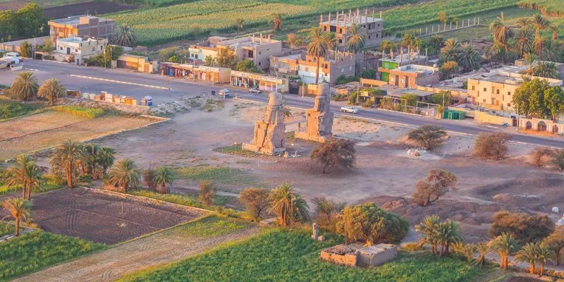Ao longo do grandioso vale do Rio Nilo, na necrópole da antiga cidade de Tebas, atual Luxor, duas estátuas gigantes construídas há 3400 anos se destacam bem próximo à estrada na margem ocidental. Essas estátuas, também conhecidas como Colossi of Memnon, são famosas ao redor do mundo como os Colossos de Mêmnon.