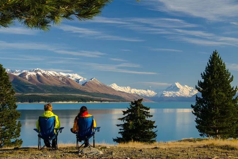 Mount Cook, ou Aoraki, para os nativos, é a montanha mais alta da Nova Zelândia. Existem vários parques de campismo no Monte Cook, cada um oferecendo uma vista diferente. O acampamento White Horse Hill oferece as vistas mais belas.