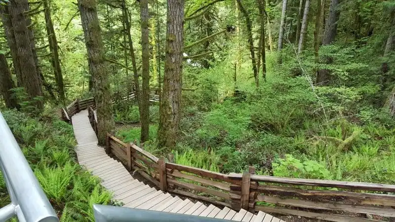 Se você é um fã de árvores, existem vários tipos, como abetos de Douglas de 600 anos, cedro vermelho ocidental, teixo ocidental, cicuta e outras árvores. A águia careca também foi avistada aqui, mergulhando para devorar peixes.