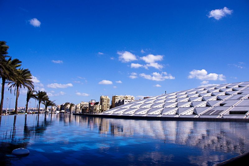 Situada na corniche da cidade, a Biblioteca de Alexandria, também conhecida como Bibliotheca Alexandrina, é um exemplo vasto e impressionante da arquitetura moderna do século XXI, mas o edifício lembra algo muito mais antigo. A biblioteca e o complexo cultural foram inaugurados em 2002 como parte de um grande projeto para comemorar o legado da cidade de Alexandria, Egito, como um antigo centro de aprendizado e cultura do mundo helenístico.