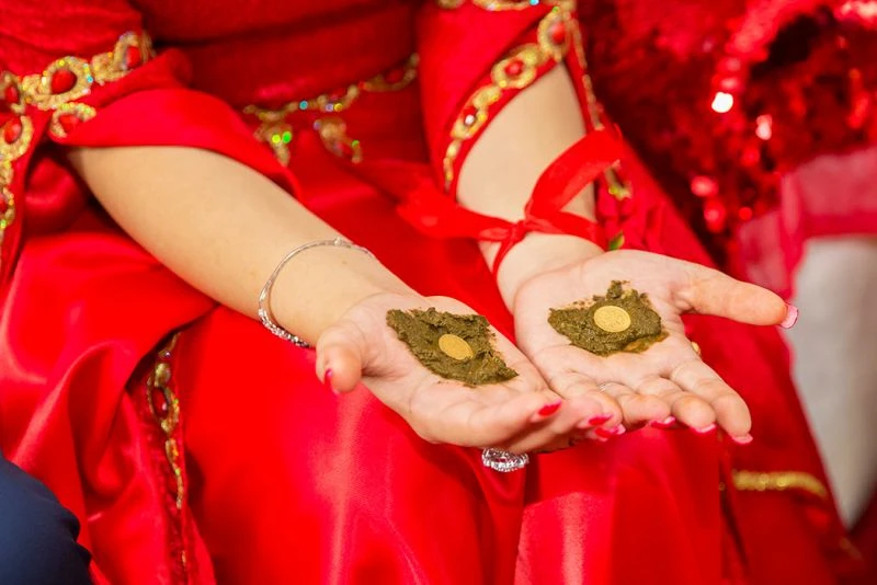 Uma celebração feita no dia antes do casamento na casa da noiva. As convidadas dela são as mulheres da sua família e as suas amigas. Nessa noite a noiva aplica henna nas mãos e pernas. Também as convidadas dela podem aplicar henna. Elas passam a noite cantando, dançando e celebrando.