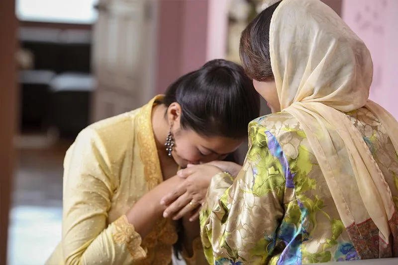 O noivo e a família dele dá presentes, moedas e acessórios de ouro para a noiva. Logo logo depois de três meses ou no máximo um ano acontece o casamento. A família da moça é responsável pela cozinha, as cortinas, e pelo quarto para o casal. A família do moço é responsável pela casa, pelo restante dos cômodos e também é responsável pela festa do casamento.